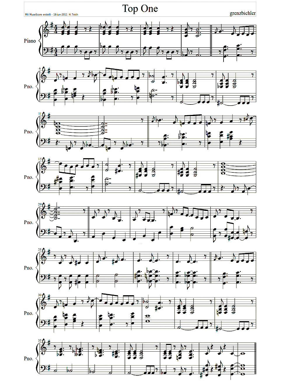 Notenblatt in höherer Auflösung im png Format zum Artikel 'Top One Partitur' aus der Vierten Dimension 2/2011.